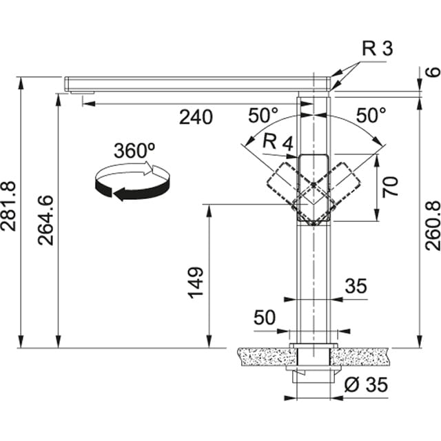 - Zasięg wylewki: 240.00 mm