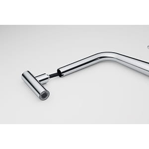 Model z wyciąganą wylewką i funkcją prysznica zapewnia komfort codziennego użytkowania, ułatwiając napełnianie większych naczyń, płukanie owoców i warzyw czy mycie zakamarków zlewozmywaka. Nowoczesny aerator zapewnia zwarty strumień laminarny, który w znacznej mierze eliminuje rozpryski.