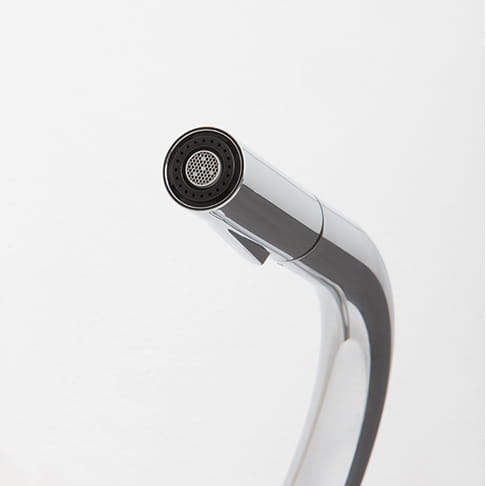 - Innowacyjny strumień laminarny – specjalna konstrukcja aeratora zapewnia zwarty i krystaliczny strumień wody eliminujący wszelkie rozpryski.