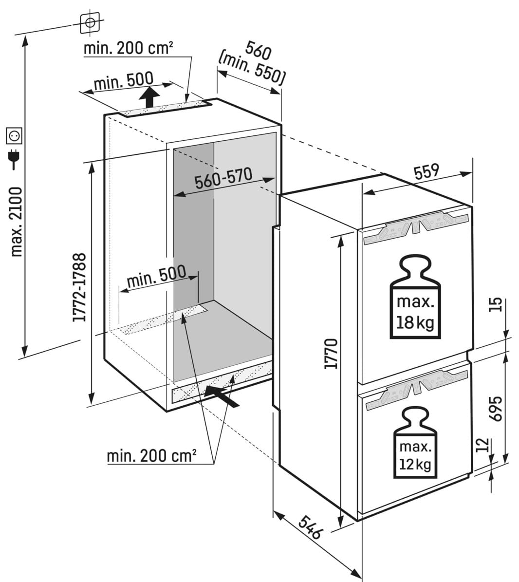 - Grupa produktów: Chłodziarko-zamrażarki do zabudowy zintegrowanej z systemem BioFresh i NoFrost