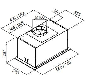 - Średnica wylotu powietrza/nie dotyczy opcji pochłaniacza 150 cm