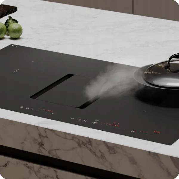 - Cicha wydajność: Silnik bezszczotkowy zapewnia wysoką moc ssania (730 m³/h) przy zachowaniu kultury pracy, która nie zakłóca rozmów w kuchni.
