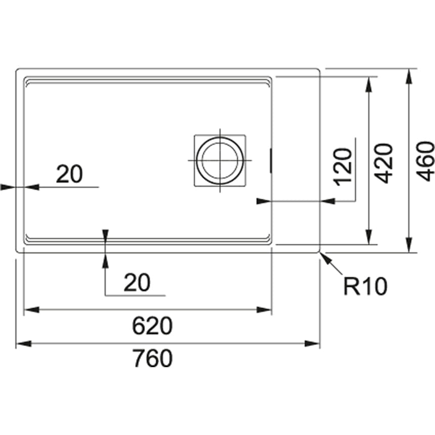 - Mały promień zaokrąglenia komory (10 mm) sprawia, że zlewozmywak wygląda nowocześnie i łatwo jest go utrzymać w czystości.